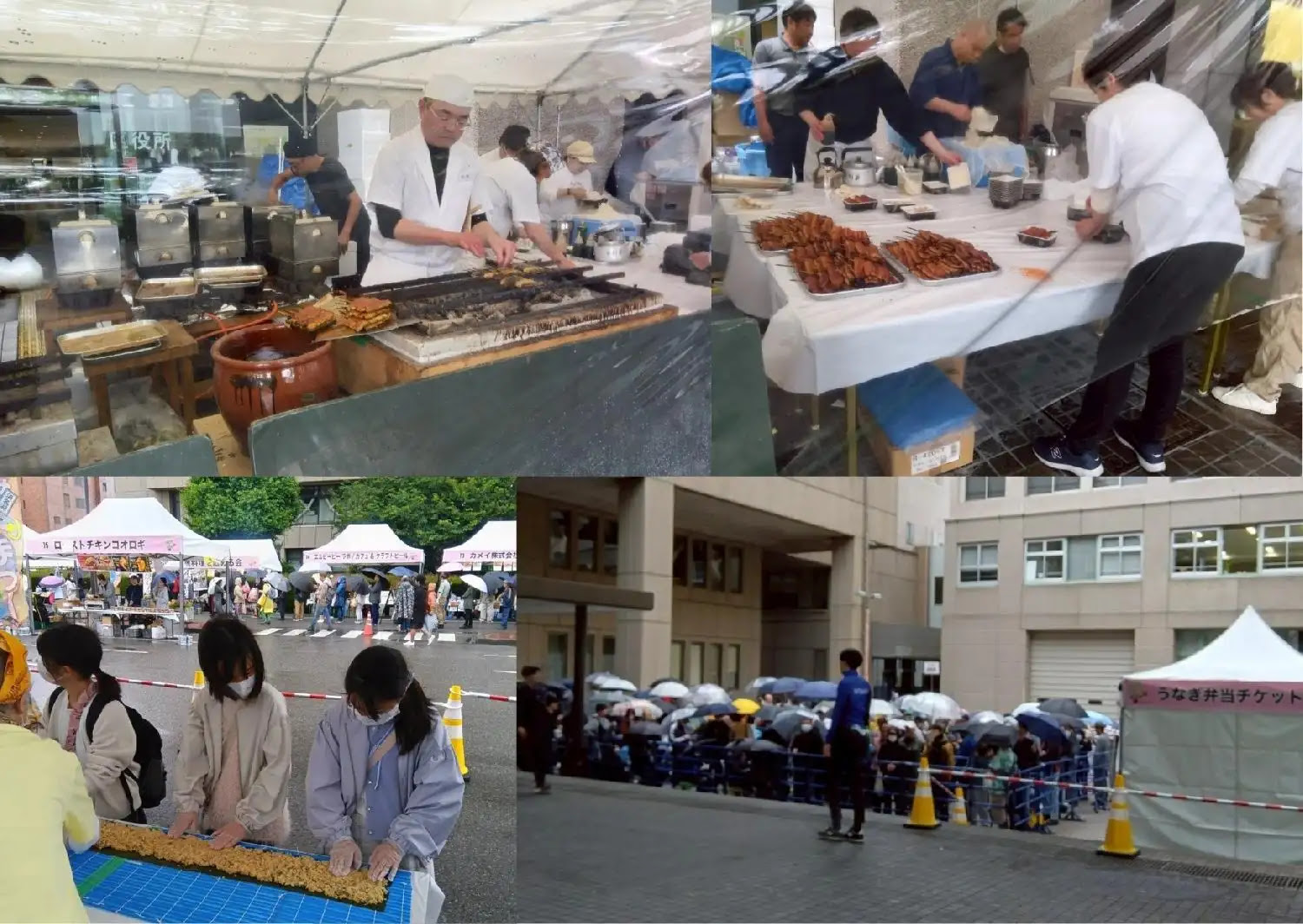 あいにくの雨となりましたが、約4,600名の皆さまにご来場いただき、うなぎ弁当の販売や出店ブースも大いに賑わいました。