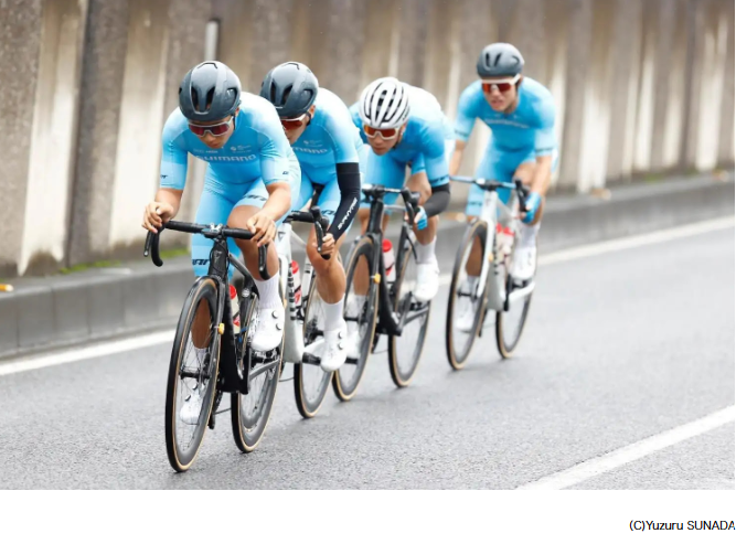 「タイムトライアルレース」では、1チームまたは1選手ずつスタートし、コース1周のタイムを競います。海外チームや国内強豪チームによる3人編成のチームタイムトライアルに加え、女子選手・男子ジュニア選手・秩父宮杯優勝選手・パラサイクリング選手が個人タイムトライアル形式で出走。個人タイムトライアルでは、専用設計のハンドルバーやホイールを装着したスペシャルバイクの使用が認められており、選手たちの多彩な走りにも注目が集まります。鍛え抜かれたパラサイクリング選手の力強い走行にもご注目ください。